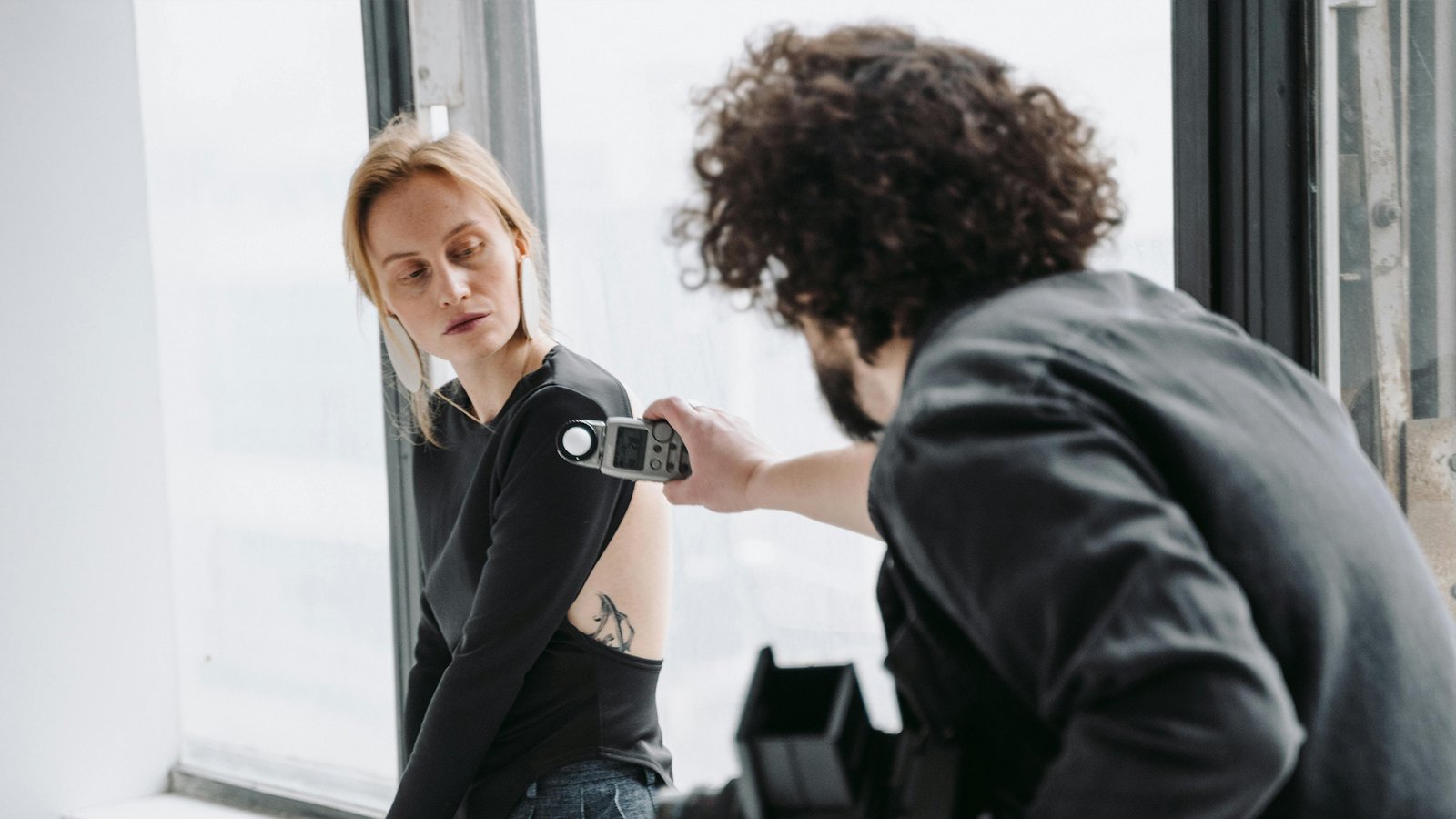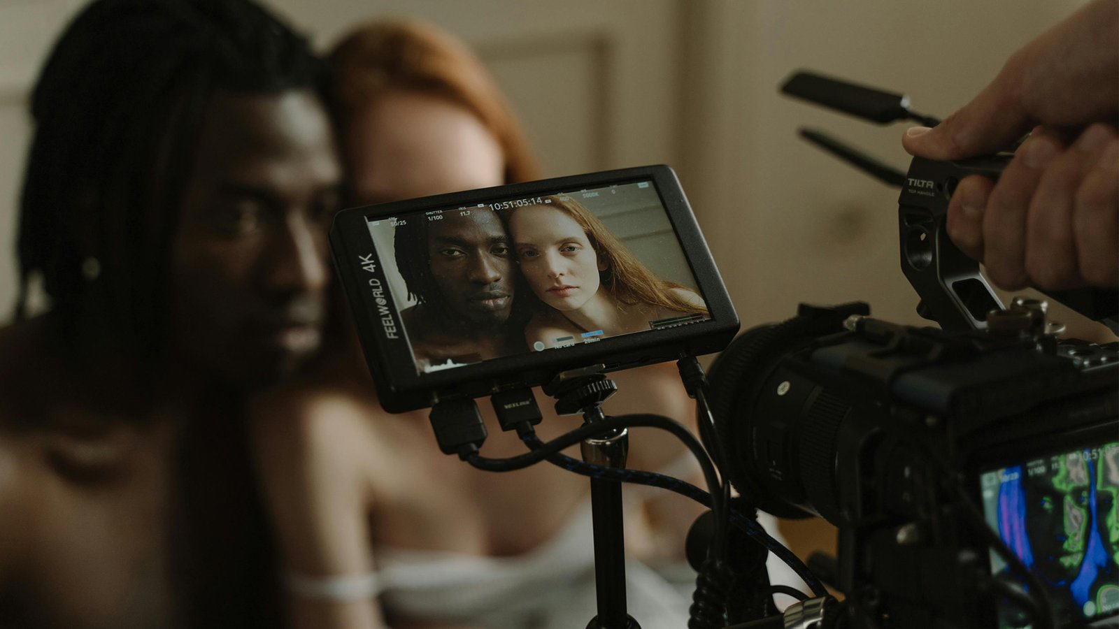 Luz cinematografíca, 2 personas y set artistico